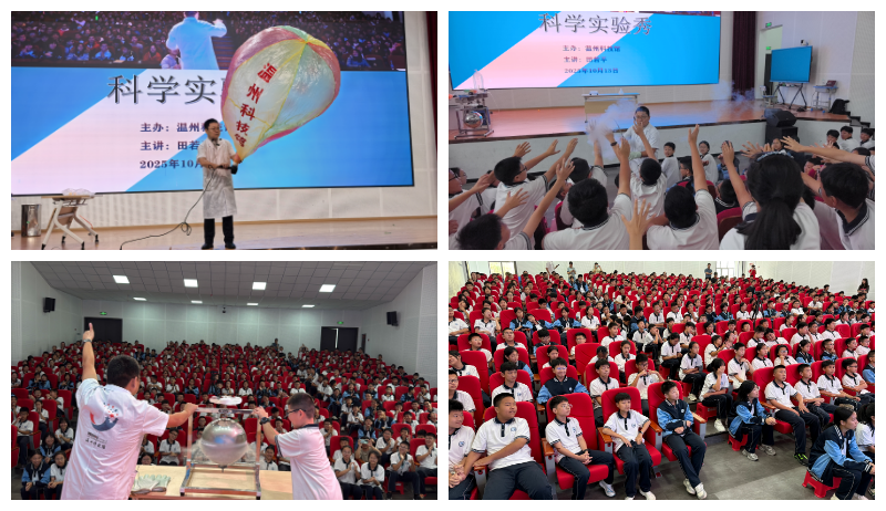 从“液氮喷雾”的探索,到“液氮大爆炸”的体积膨胀原理揭秘;从“塑料袋热气球”升空的奇特现象,到“空气炮”的强劲威力......田若平老师带领360名七年级学生走进了科学的奇妙世界,用生动有趣的语言和精准的操作技巧,将复杂的科学原理变得通俗易懂,让学生们在轻松愉快的氛围中掌握了科学知识。