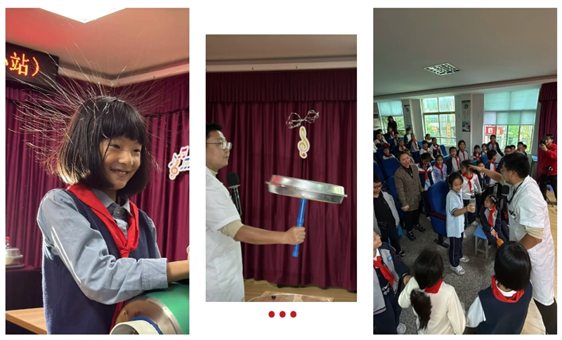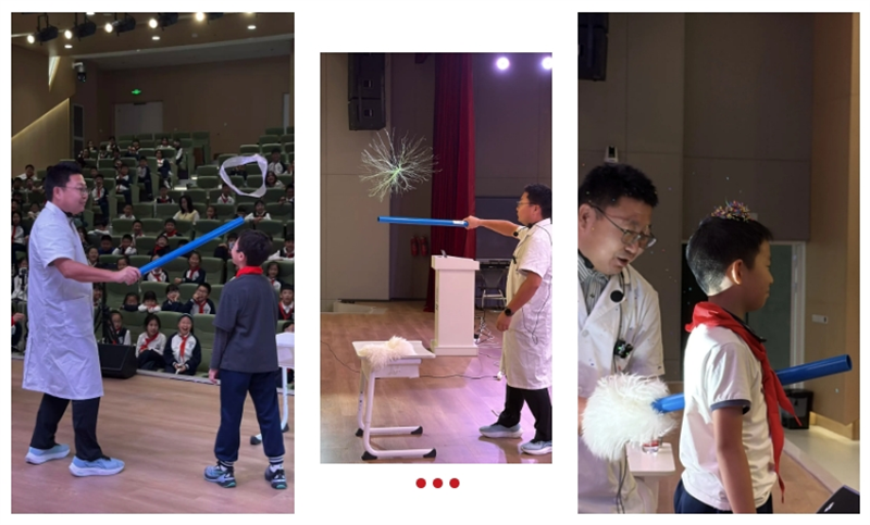 头发摩擦后“怒发冲冠”、气球泡泡“违抗重力”悬浮空中、彩色纸屑“头顶飞花”……田若平老师用一系列神奇的静电实验,为同学们打开了一扇奇妙的科学之门。他通过直观的演示和生动的讲解,将抽象的静电原理变得清晰易懂,让同学们在阵阵欢笑与惊呼中,近距离感受科学的神奇魅力。
