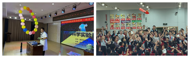 液氮吹出“冰号角”、2米塑料袋火箭比肺活量、乒乓球机关炮“火力全开”……田若平老师带领同学们走进了科学的奇妙世界,用生动有趣的语言和精准的操作技巧,将复杂的科学原理变得通俗易懂,让学生们在轻松愉快的氛围中掌握了科学知识。