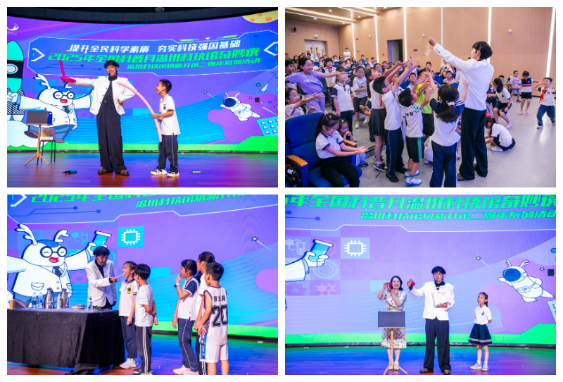 报告厅内,《魔法科学秀》与《科学实验秀》轮番上演,吸引500多名观众参与互动。液氮制造的缥缈云雾、饮料瞬间变清水的神奇现象、逃脱术的科学解析,以及液氮驱动不锈钢球旋转发电,点亮灯泡的奇妙现象等等,不断引来阵阵惊呼与掌声。许多孩子第一次意识到:魔法的“神奇”,原来都藏着科学的奥秘。