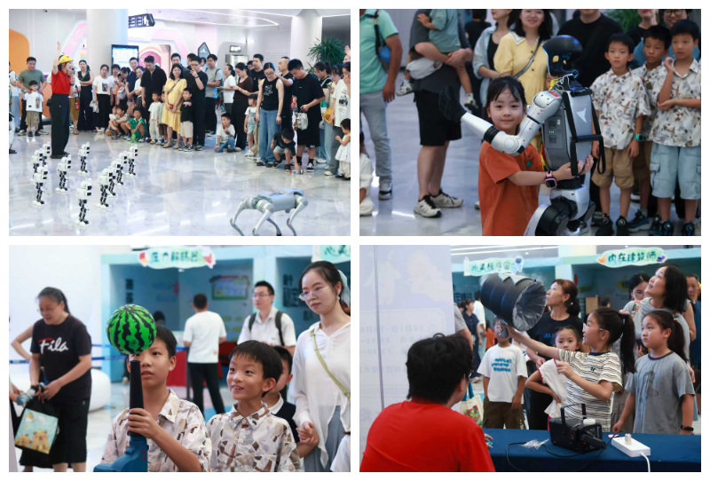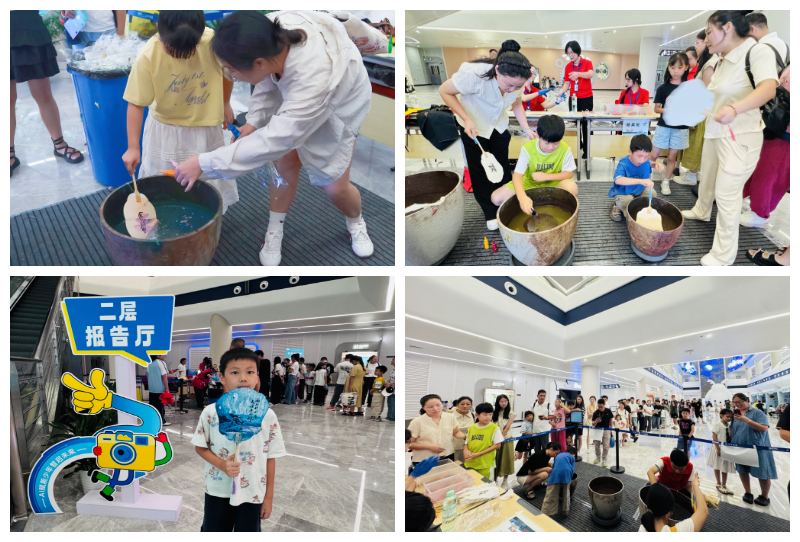 作为本次活动的重头戏,位于一楼的“科学引力场”科技游园区成为最具人气的打卡点。活动以机器人+机器狗组合热场开场,吸引众多游客驻足围观。“气流足球”、“空气大炮”、“马德堡半球”、“漆扇制作”等六大互动体验项目前,常常排起长队。孩子们用吹尘机顶皮球时理解了伯努利原理,在拉动半球时亲身感受了大气压强的威力。这种“玩中学、学中玩”的形式,让抽象的物理知识变得直观而有趣,现场欢笑声与惊叹声此起彼伏。“家国知识AI智趣行”环节巧妙地将国庆历史与中秋文化融入趣味问答。游客们在机器人“笨笨”的引导下积极思考、愉快互动,成功通关后收获科技馆定制玩偶作为奖励。这一过程寓教于乐,让公众在收获知识与礼品的同时,对国家发展与科技成就产生了更真切的自豪感与认同感。而“漆扇制作”环节则让家长与孩子共同沉浸于非遗技艺的体验中,在亲手绘制中传承文化、表达家国情怀。