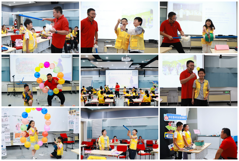 田若平团队首先通过一系列精彩的科学实验演示,瞬间点燃了同学们的好奇心。在随后几天的动手实践环节,同学们们分组协作,亲手操作实验器材,学习科学探究的规范方法,为成果展示积极准备。