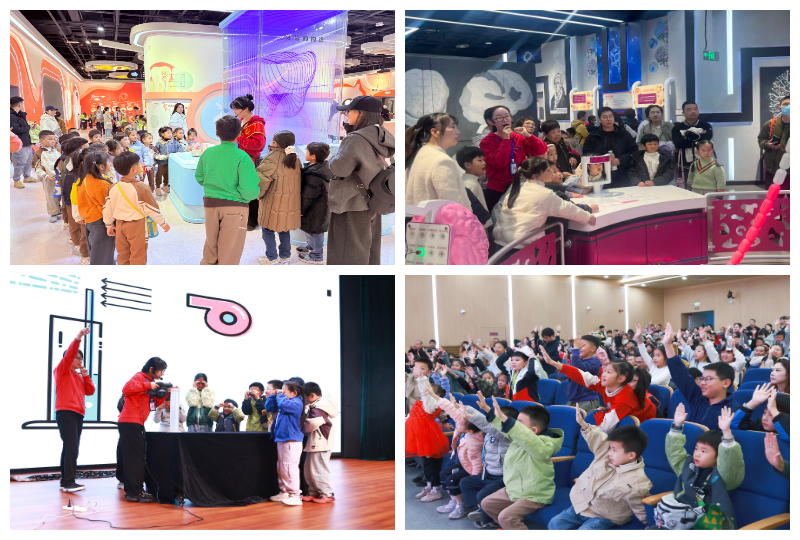 孩子们在科技馆科工作人员的引导下,先后体验科普讲座、展厅讲解、高压放电演示以及趣味科普秀等环节。通过沉浸式的参观与互动,小朋友们不仅学到了丰富的科学知识,也激发了对科学世界的浓厚兴趣。
