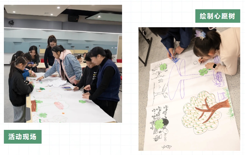 在活动的尾声,每个孩子剪下一颗四叶草,在叶片上郑重写下自己的心愿——"希望妈妈多陪陪我"、"希望爸爸少看手机"、"希望被信任"……这些纯真的愿望与之前的纸飞机一起,被粘贴在亲子共同绘制的"心愿树"上,象征着在理解的土壤中,爱的种子正在发芽。