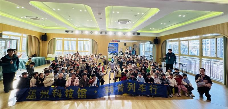 当科技与童真相遇,会碰撞出怎样的火花?1月21日至22日,温州科技馆“科普列车行”先后驶入温州市第十九幼儿园鹿锦园区、温州市龙湾区嘉华幼儿园和温州市龙湾区文昌路幼儿园,为孩子们带来了一场场别开生面的机器人科普活动。