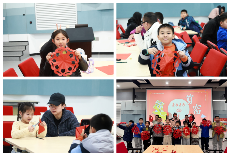“剪窗花原来藏着这么多对称的学问!”在《剪窗花》课堂上,孩子们在老师的指导下,将红纸折叠翻转,随着剪刀的游走,一幅幅精致的窗花跃然纸上。