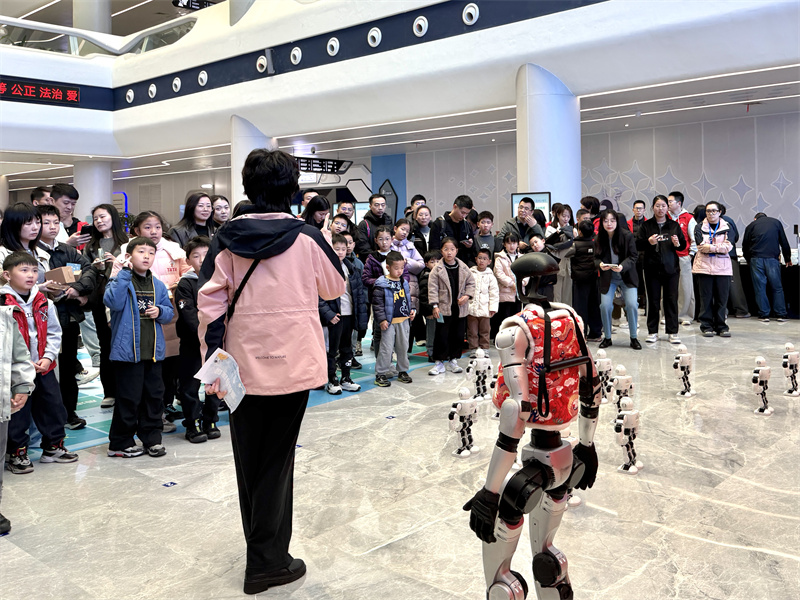 上午9时,活动在欢快的音乐中正式启动,十余台AI机器人带来的精彩表演率先点燃现场气氛。机器人伴随着歌曲节奏做出整齐划一的灵动动作,引得现场孩子们阵阵欢呼,为整场活动拉开了趣味满满的序幕。